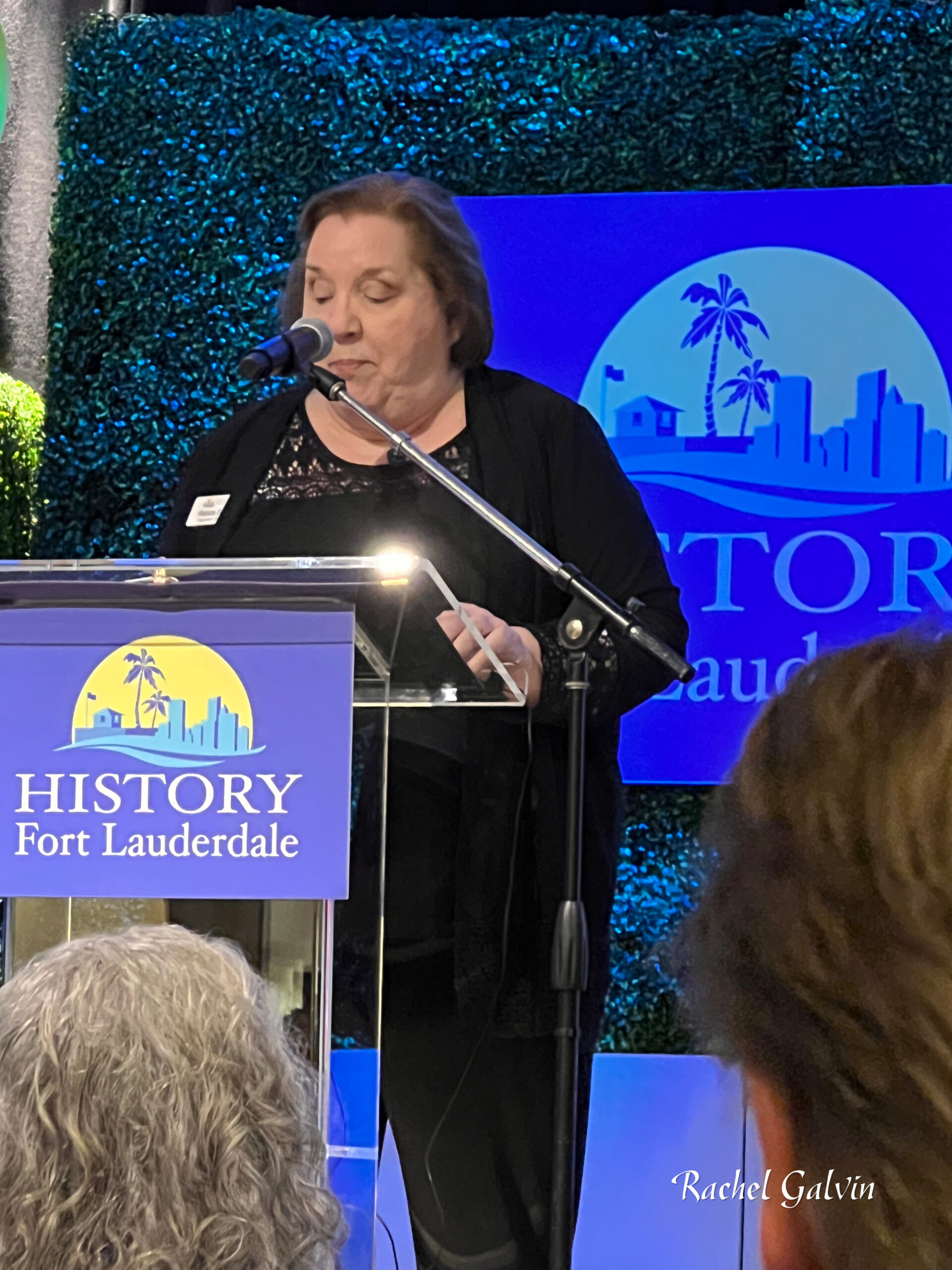 The History Makers event began with some mingling while listening to the music of Angeline Fontaine. People could grab a drink and choose something from the buffet before sitting down to a presentation emceed by Fay Albernas. Teen singer Kai Bui from the Florida Children’s Theater wowed the crowd with his powerful song to kick things off. Many local dignitaries spoke, including former mayor Lamar Fisher. Ft. Lauderdale mayor Dean Trantalis and Ft. Lauderdale commissioner Steven Glassman presented proclamations for the honorees. President of the History of Ft. Lauderdale Board of Trustees Patrick Scott and Executive Director Patricia Zeiler also spoke about the honorees, as did Robert Lochrie, who has been involved with the performing arts center and the historical society. In addition, a video was shown with people singing the praises of Shanley, Milroy and Trouba while talking about the impact the mall has also made through the years.